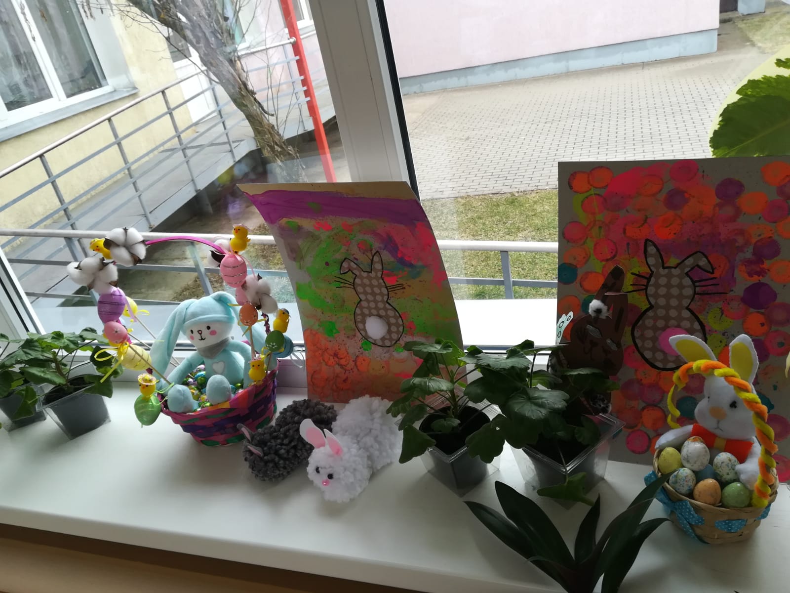 Lieldienas gaidot, bērni kopā ar vecākiem gatavo zaķus no dažādiem materiāliem. Izstāde atrodas Meža ielā 12.